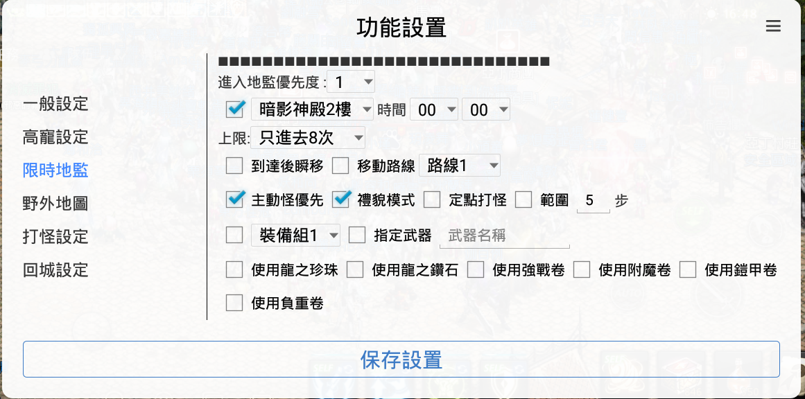 設定如下,過12點後會把其他有勾選進入的副本完成 ,唯獨暗影就是不進去打 即使重新開始也一樣不進去,副本時間還有3小時左右。